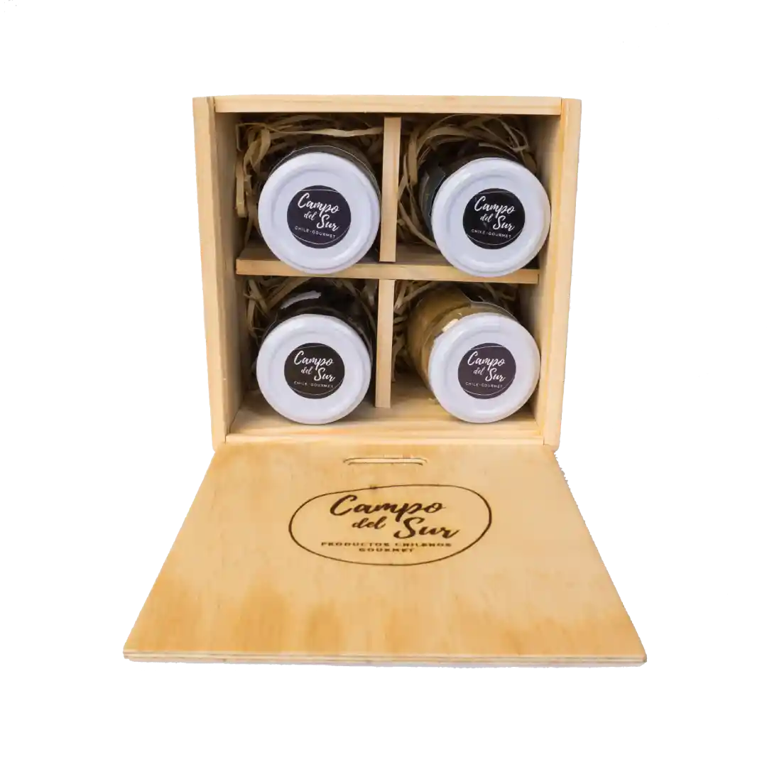 Nuestra Caja de Regalo Campo del Sur reune lo mejor de nuestros productos gourmet, especial Negro en Cabeza, es el resultado de un largo proceso de sobre maduración y fermentación, en donde diferentes variedades de ajo se transforman desde su color blanco característico a uno negro, con textura suave y un sabor dulce, umami, con toques a regaliz, trufa negra y vinagre balsámico.